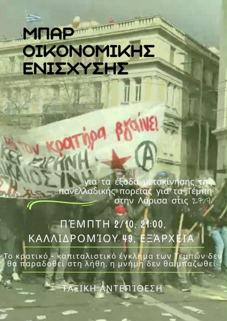 για τα έξοδα μετακίνησης της πανελλαδικής πορείας για τα Τέμπη στη Λάρισσα στις 27/09.